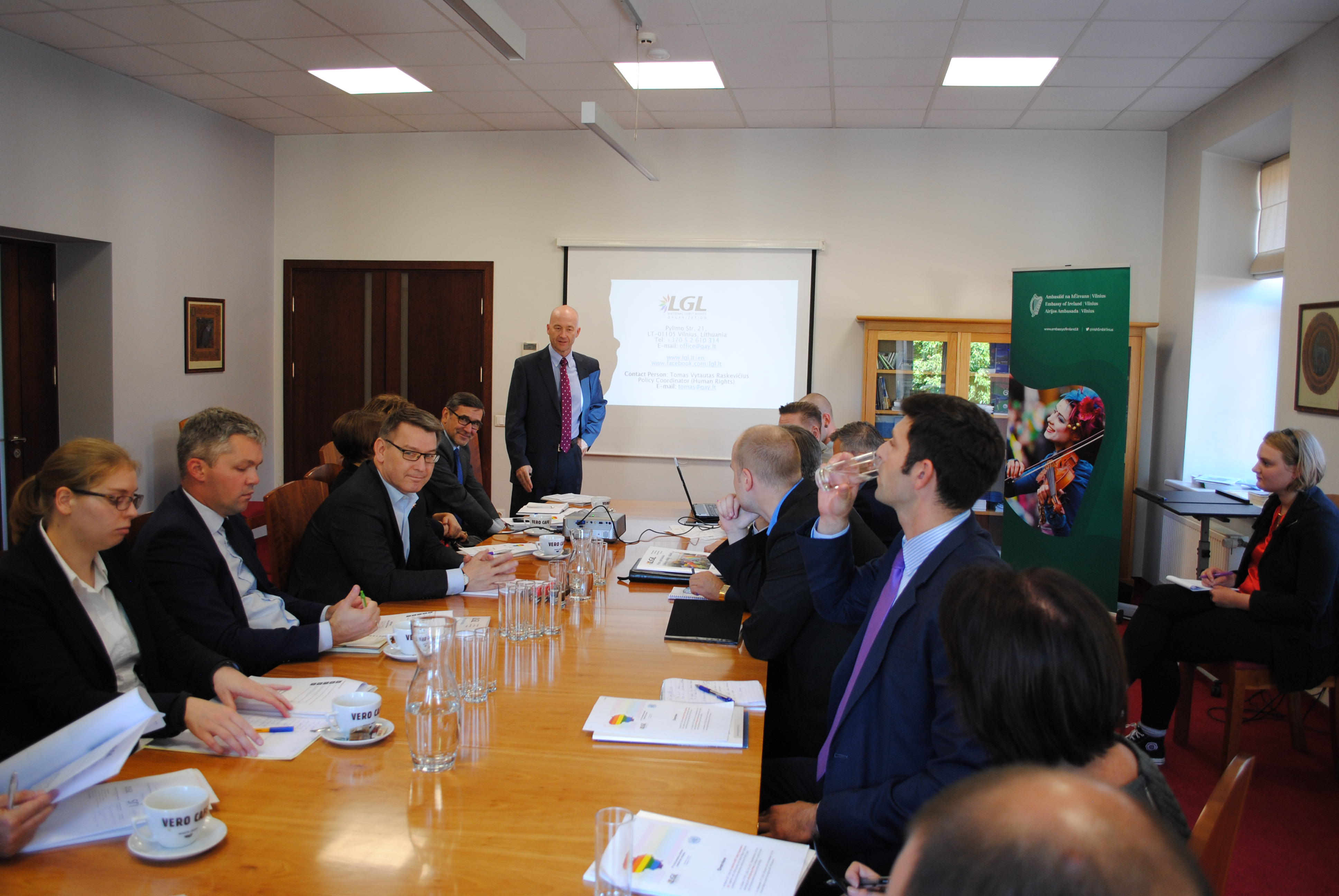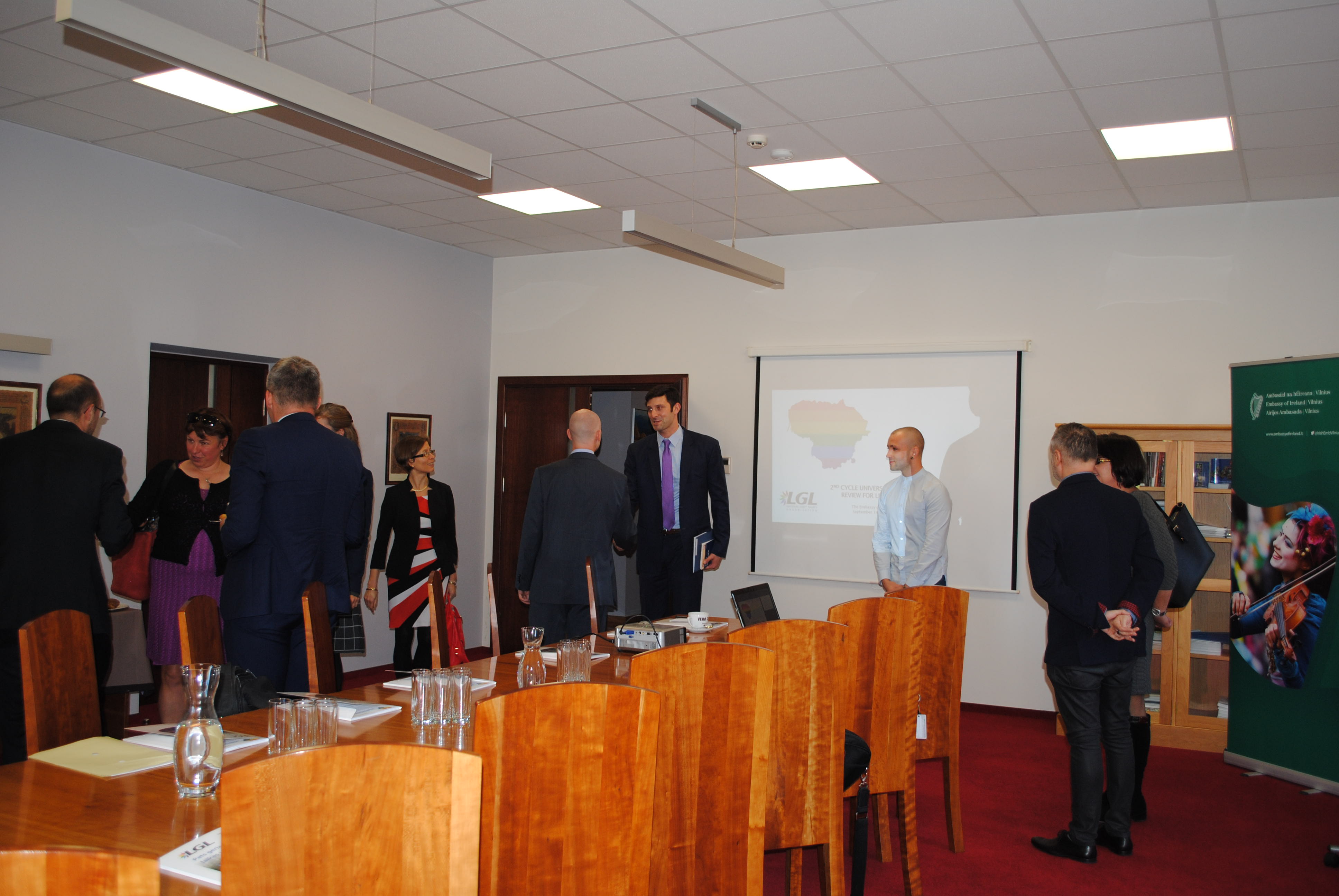 With the aim of exploring further opportunities in raising international awareness on LGBT* human rights situation in Lithuania within the framework of the second UPR cycle, on September 14th, 2016 the National LGBT* Rights Organization LGL invited the representatives of various diplomatic representations residing in Lithuania to take part in a meeting, hosted by the Embassy of Ireland.