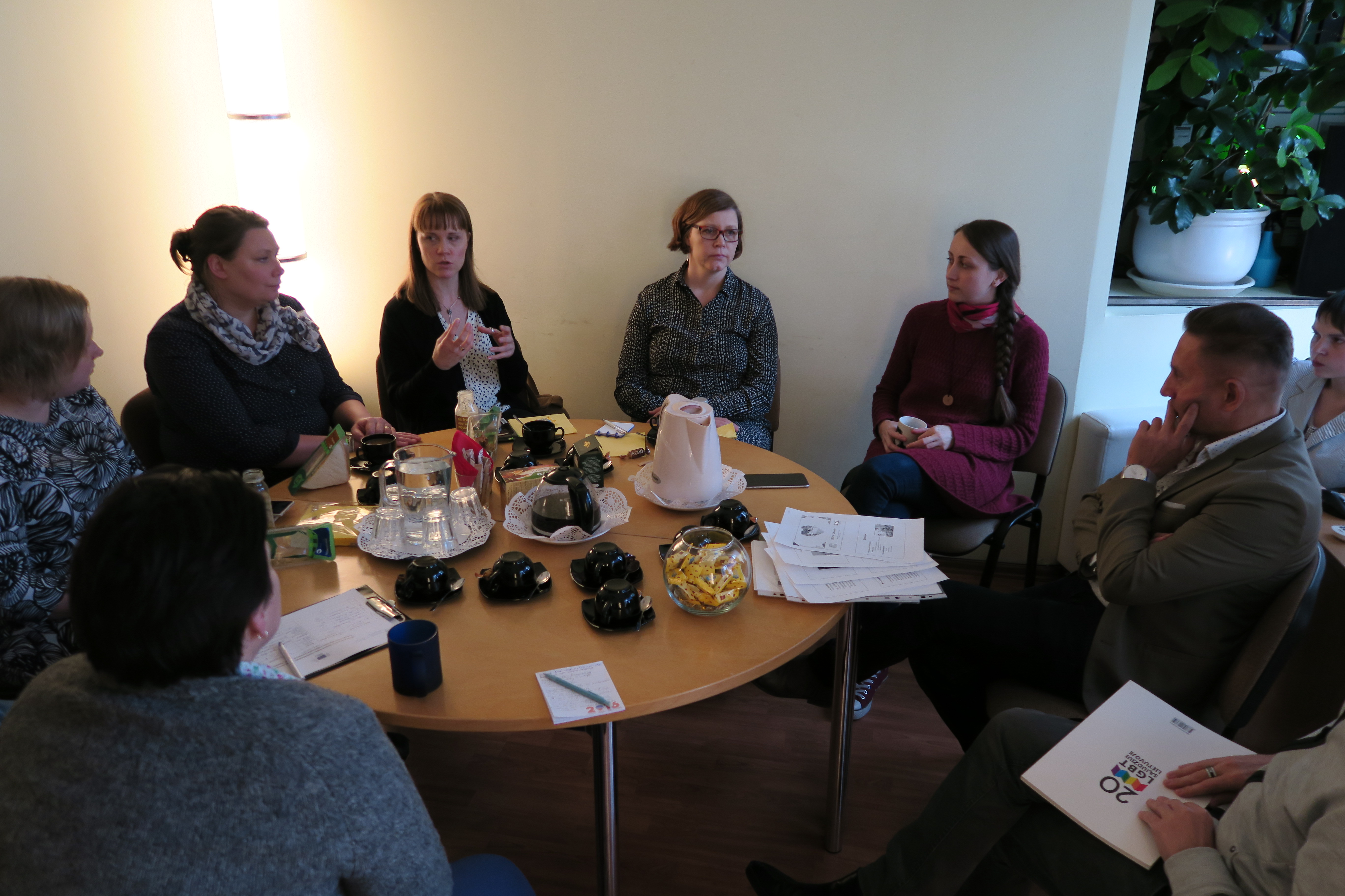 In January, 2017 the project “Rainbow Rights – Promoting LGBTI Equality in Europe” has started. The project is carried out by the Ministry of Justice of Finland in partnership with Ministry of Social Affairs and Health of Finland, the national umbrella NGO “Seta – LGBTI Rights in Finland”, the Association of Finnish Local and Regional Authorities and the National LGBT* rights organization LGL. Therefore, on the 2nd of February, 2017 a short meeting with the Finish delegation in the LGBT* centre was held in order to discuss the project and introduce the visitors with LGL’s activities.