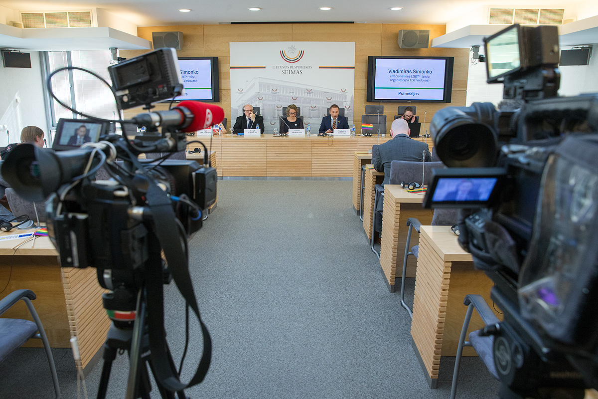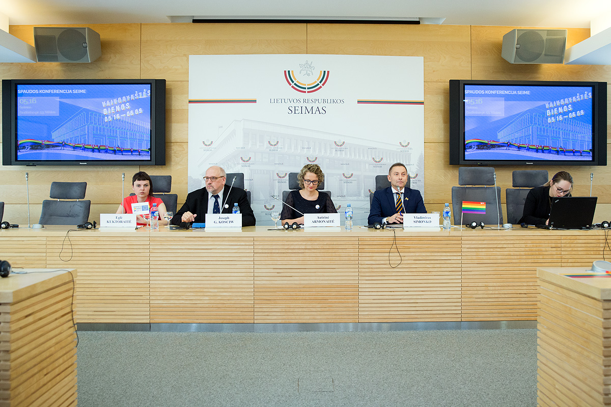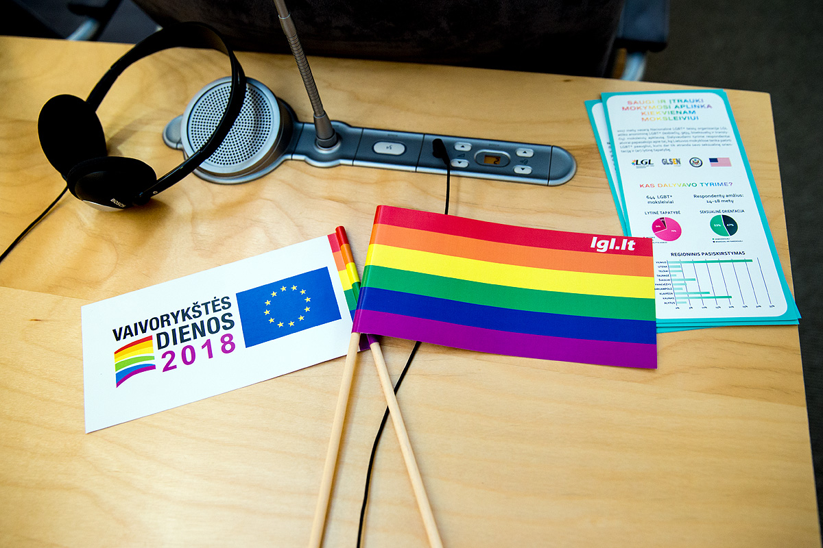 The press conference was attended by: Aušrinė Armonaitė (Member of the Lithuanian Parliament), Vladimir Simonko (Executive Director of the National LGBT* Rights Organization LGL), Dr. Joseph G. Kosciw (Chief Research & Strategy Officer of the US-based organization GLSEN), Eglė Kuktoraitė (Communication Coordinator of the National LGBT* Rights Organization LGL).