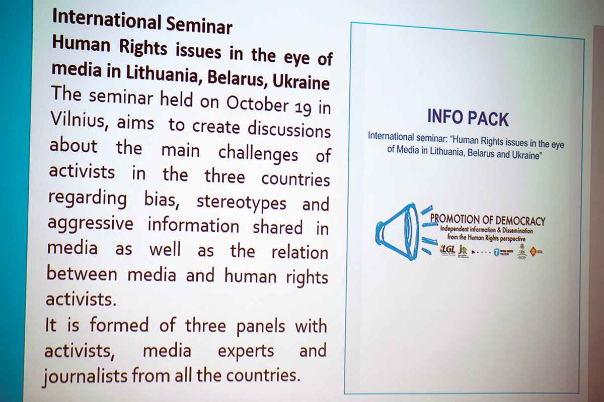 On October 19, 2018, the National LGBT rights organization LGL organized a unique international seminar where participating researchers, experts and public opinion leaders had the opportunity to discuss the main challenges faced by human rights activists in Lithuania, Belarus and Ukraine. During the seminar, participants discussed the impact of hate speech, propaganda and other forms of aggressive information on the human rights discourse in the countries.