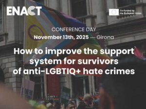 On November 13, Girona will host the conference “How to improve the support system for survivors of anti-LGBTIQ+ hate crimes”, the final event of the European project ENACT (Enhancing the capacity of civil society organisations to support victims of anti-LGBTQI hate crimes).