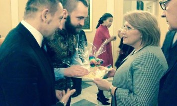 On February 28th, 2015 the representatives of LGL attended a reception by the President’s Foundation for the Wellbeing of Society. The main purpose of the said reception was to support initiatives that promote LGBT* inclusion and respect for diversity. The LGL’s Board Chair Vladimir Simonko and the LGL’s Policy Coordinator Tomas Vytautas Raskevičius had the chance to present the President of the Republic of Malta with an LGBT*-themed souvenir from Lithuania. The gift package included a Baltic Pride 2013 photo album and a “I Support Family Diversity” t-shirt, which is banned in Lithuania due to the ‘homosexual propaganda’ law. “It was absolutely amazing to discuss the censorship of LGBT*-related positive information in Lithuania with the President of the Republic of Malta. Ms. Preca was very supportive and affirming – quite contrary to the key Lithuanian politicians,” – says Mr. Raskevičius.