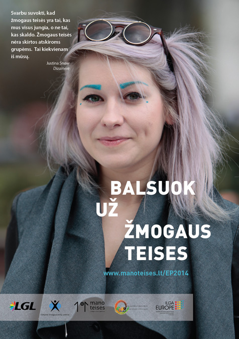 Plakatas 9: „Gyvenimas, išlaisvintas nuo diskriminacijos ir nelygybės – Europos ateities vizija. Balsas už žmogaus teises – tai indėlis į jos įgyvendinimą.“ – Aušrinė Skirmantė