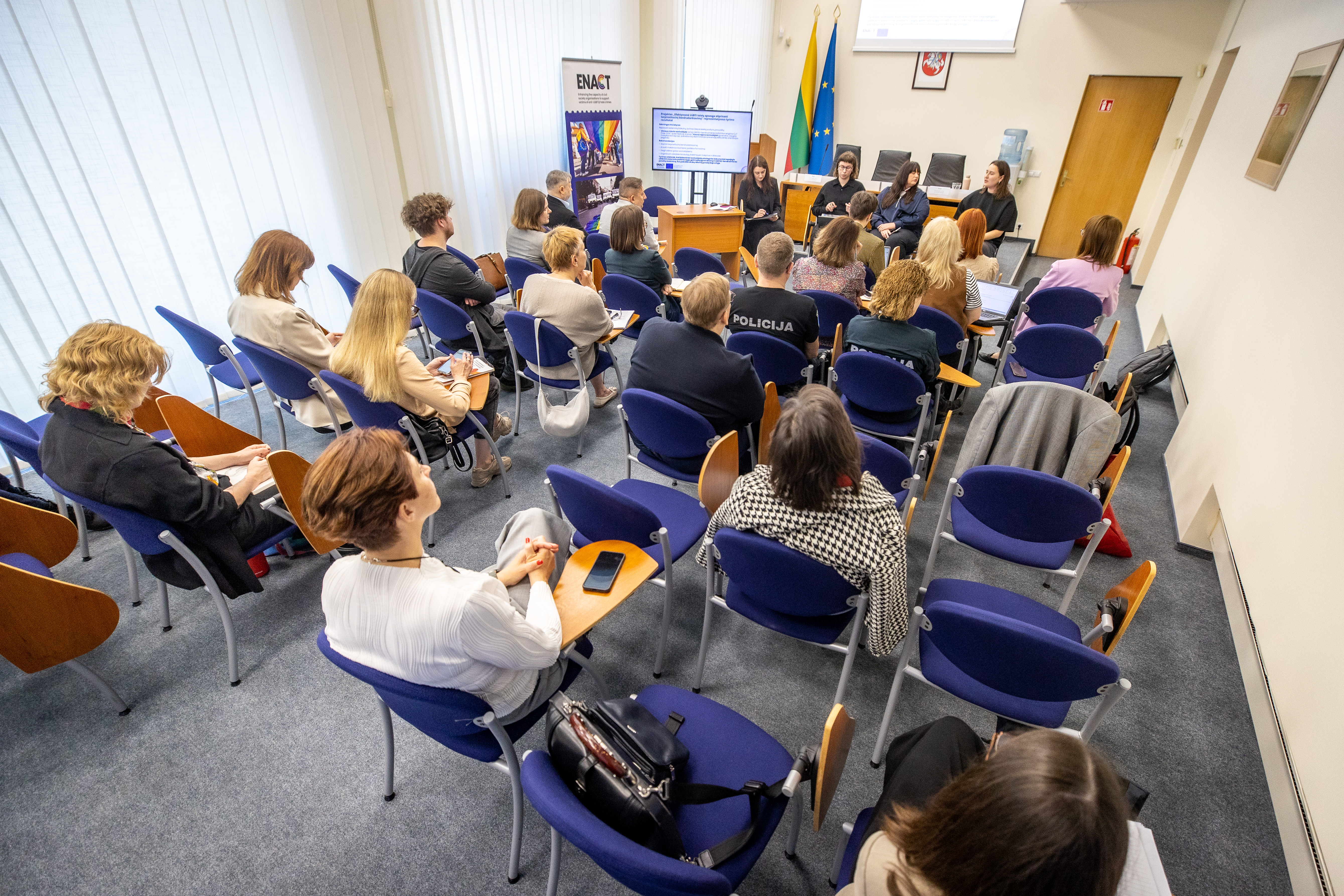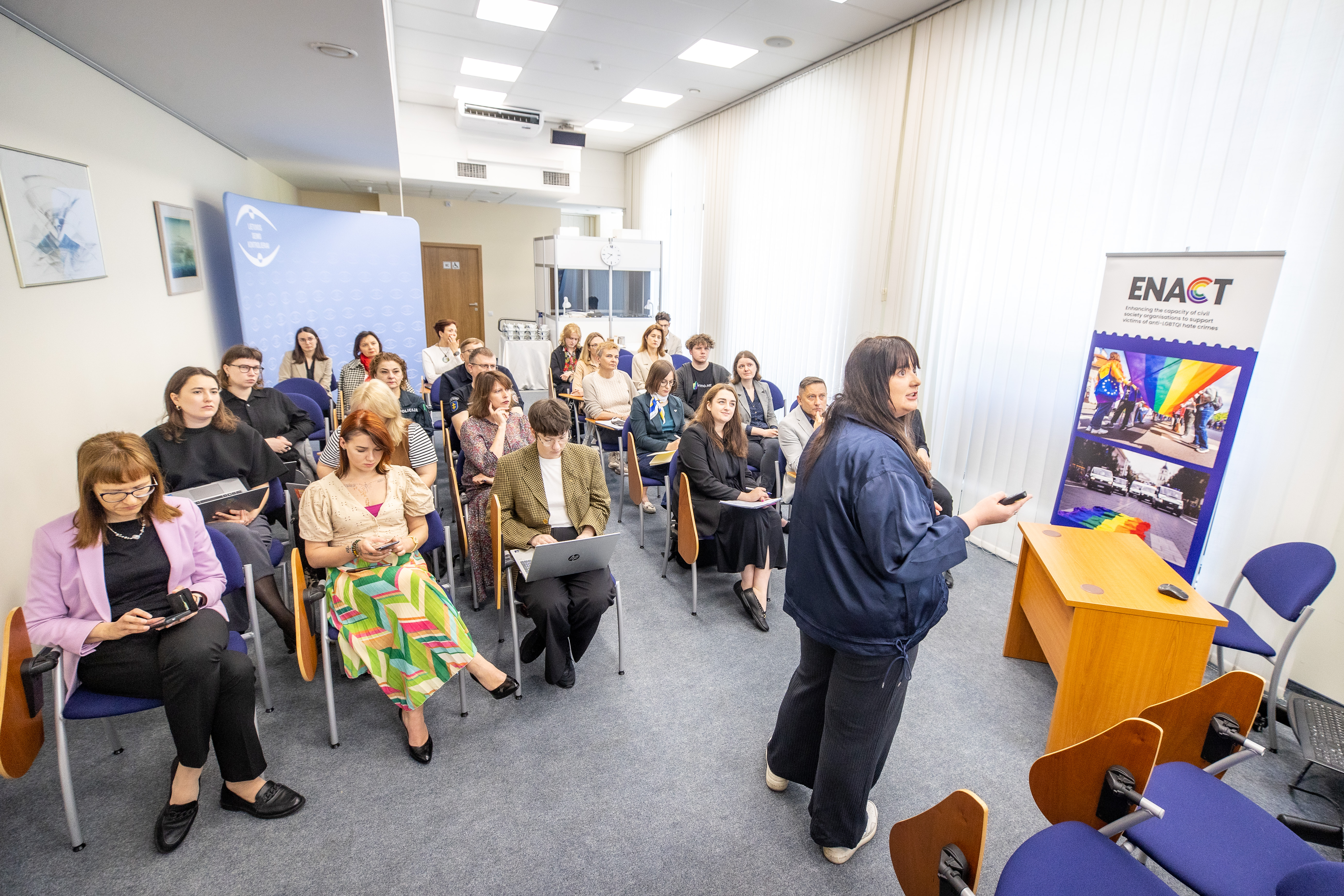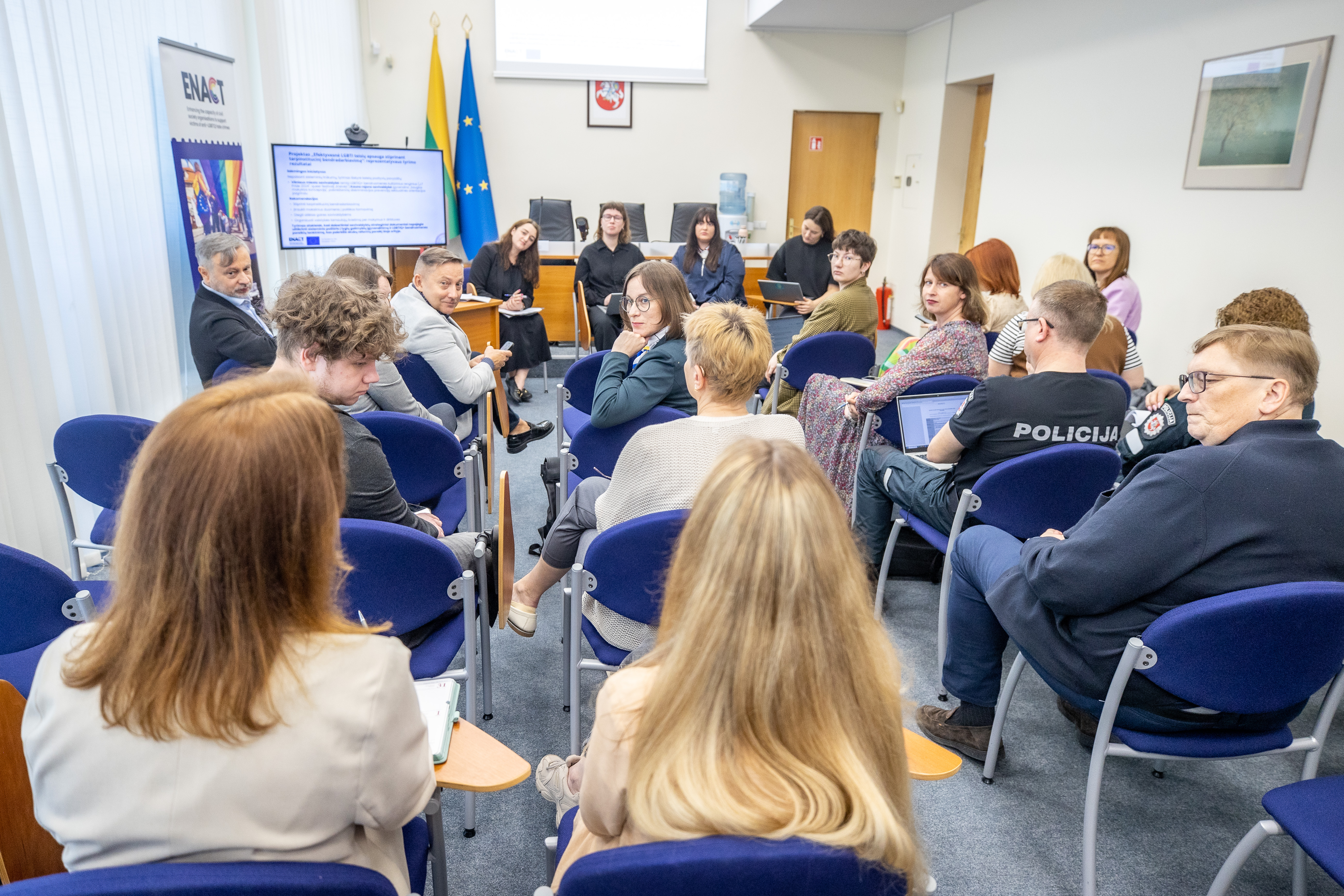 Diskusiją atidarė Seimo kontrolierių įstaigos vadovė, Seimo kontrolierė dr. Erika Leonaitė, pabrėžusi, kad pagarba žmogaus teisėms turi būti užtikrinta visiems – be išimčių. LGL projektų vadovė ir teisininkė Monika Antanaitytė pristatė naujausią „ILGA-Europe“ vaivorykštės žemėlapio analizę, kuri atskleidė tiek pažangą, tiek vis dar egzistuojančius iššūkius Lietuvoje.