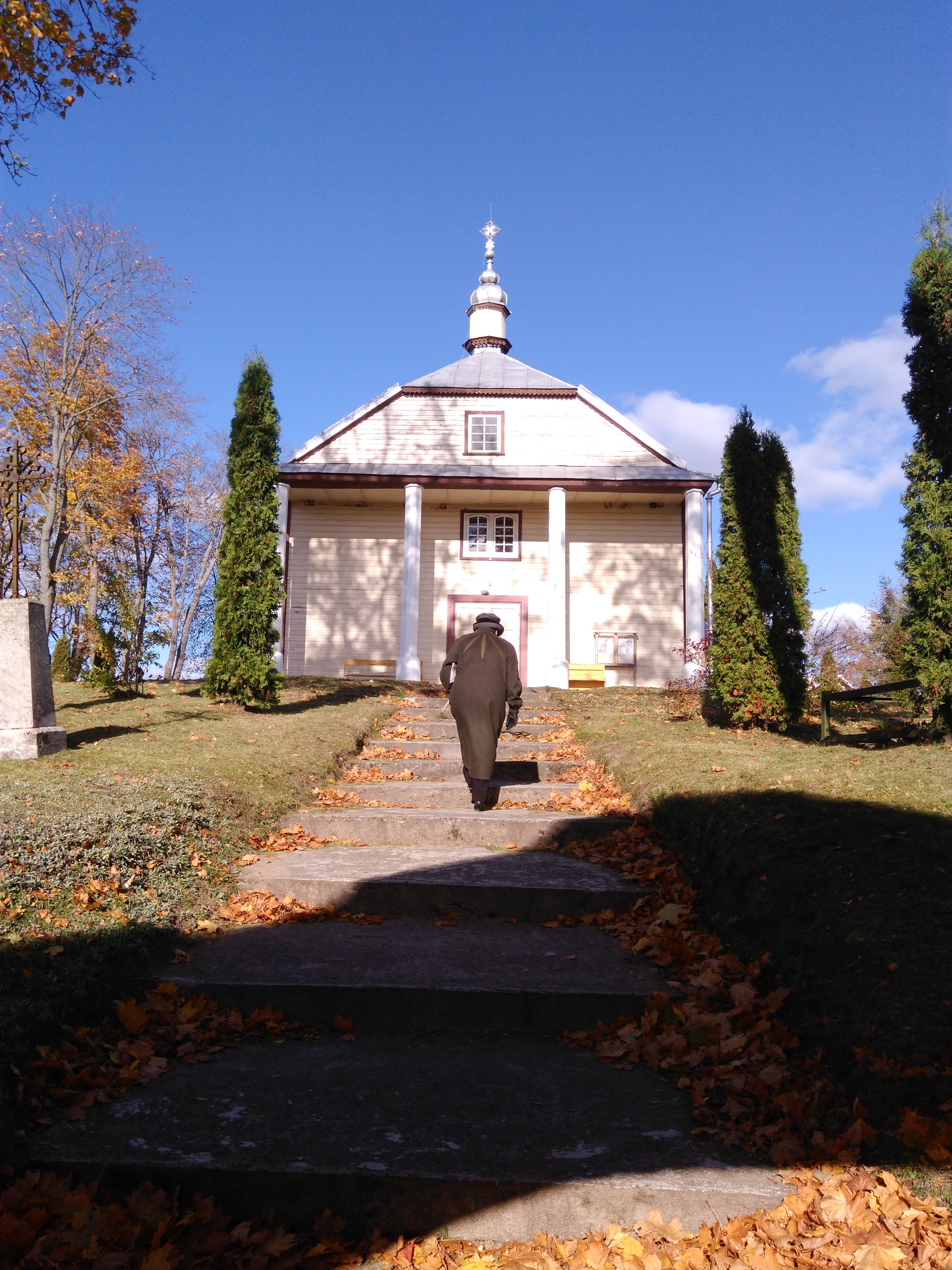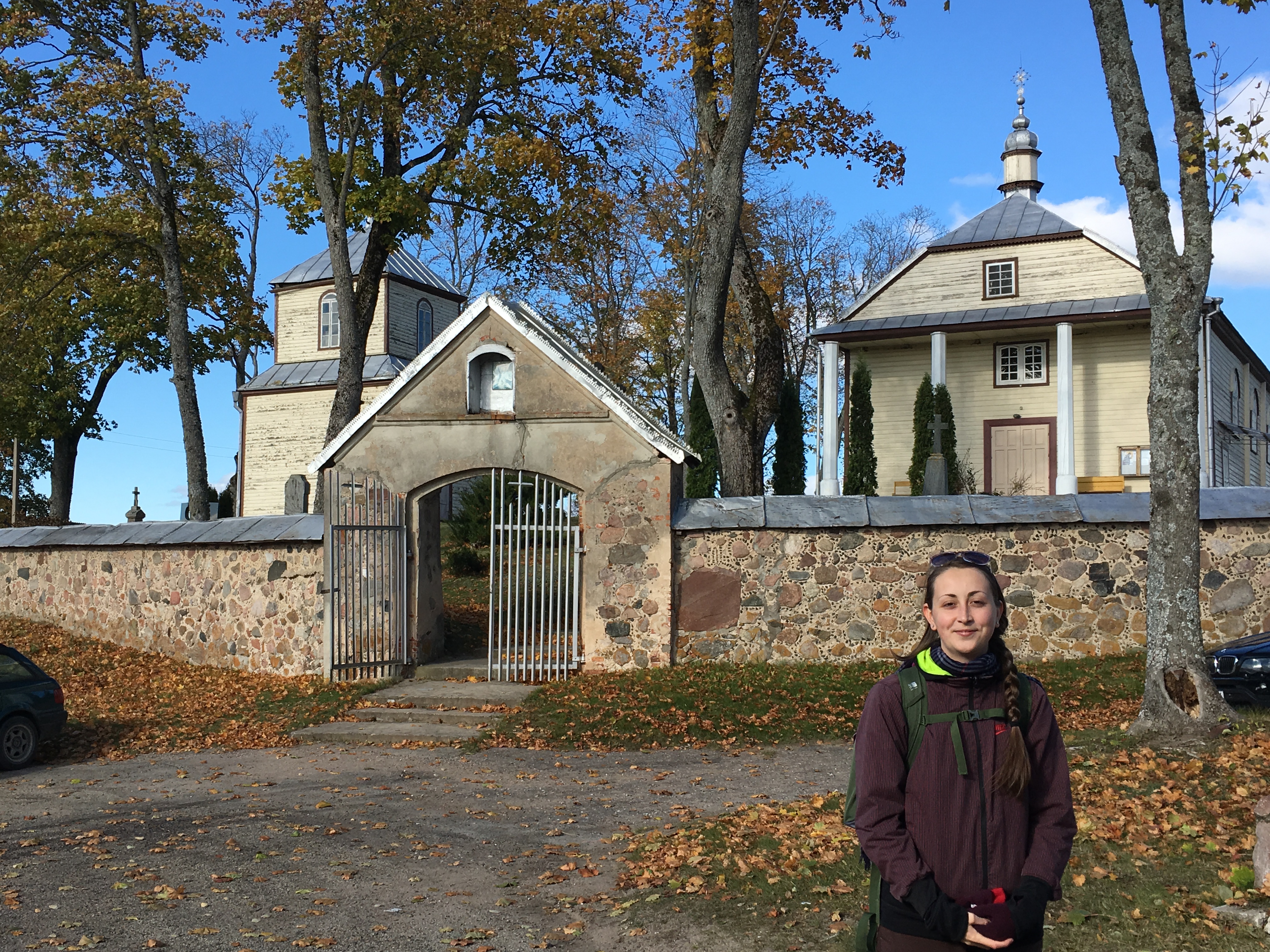 Tik pradėjus kelionę link ežero, mes išvydome mažą bažnytėlę ir užsukome į ją apsižvalgyti. Sena moteris pradėjo mus kalbinti, jos šypsena buvo be galo šilta, tačiau mes nesupratome nė žodžio, tai pastebėjusi senolė mus paleido (mums reikėtų atidžiau mokytis lietuvių kalbos). Palikusios bažnyčią tęsėme kelionę toliau, tačiau dar vienas netikėtas dalykas privertė sustoti: stiprus obuolių kvapas apsupo mus. Priešais save pamačiau daugybę obelų, taigi sustojome pasirinkti ant žemės nukritusių vaisių.