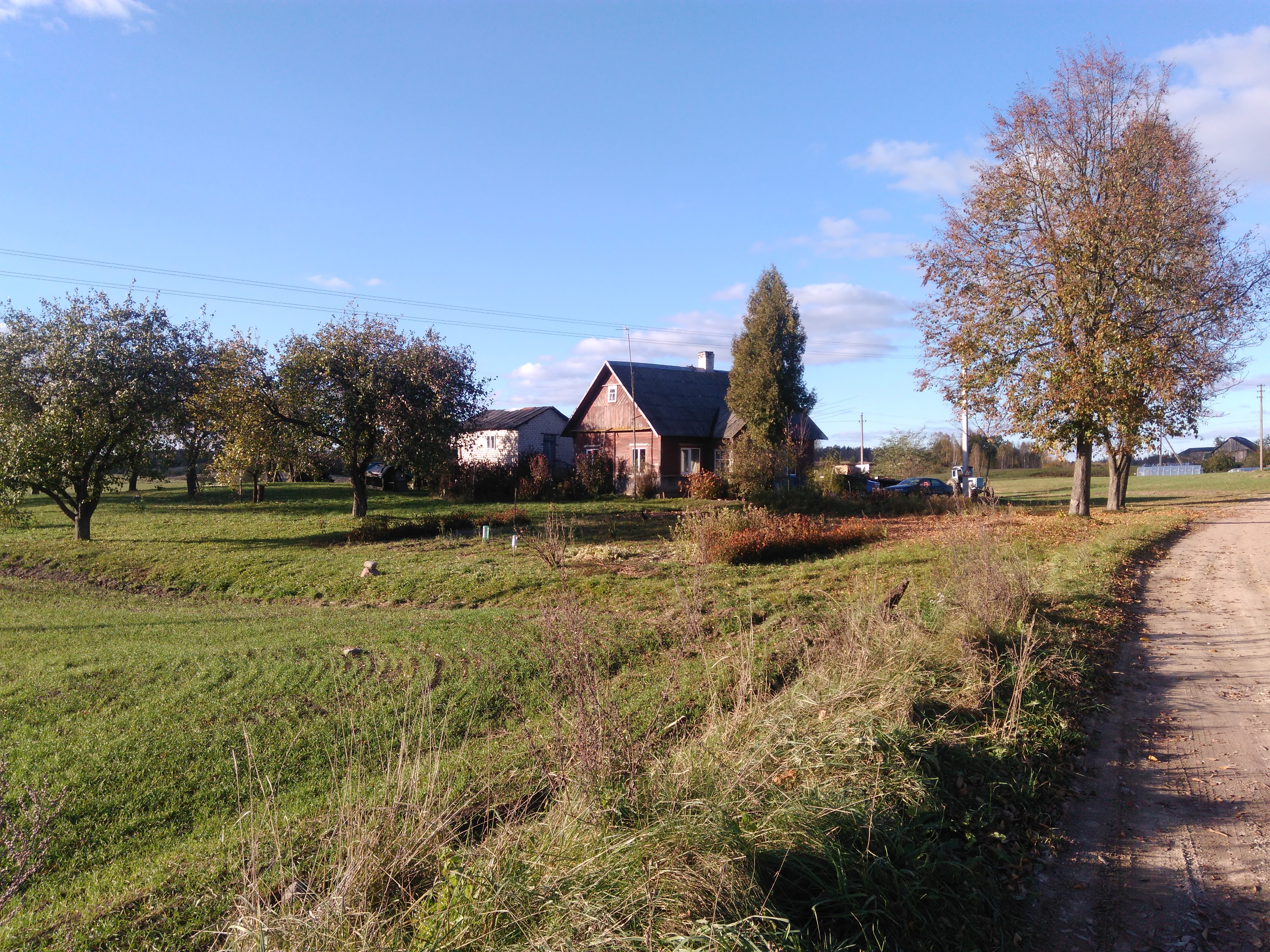 Oras buvo nuostabus, tad kelionė buvo tikras malonumas. Mes net sugebėjom surengti improviziotą pikniką vidury laukų. Viskas aplinkui buvo žalia, tylu ir ramu. Kiekvienas namas dailiai pastatytas ir, pasirodo, kiekvienas to kaimelio žmogus augina katę ar/ir šunį, tad kelionėje turėjom kompanijos (tiesą pasakius Veronika tuo patenkinta nebuvo, ji labai bijo šunų ir kartais jai trunka amžinybę pereiti per gayvę. Tuo tarpu man buvo visai juokinga žiūrėti į ją plačiai atmerktomis akimis besidairančią aplinkui). Taip pat pakeliui link ežero mes sutikome tris žąsis ir dar kelis gyvūnus. Visa tai buvo šiek tiek poetiška.