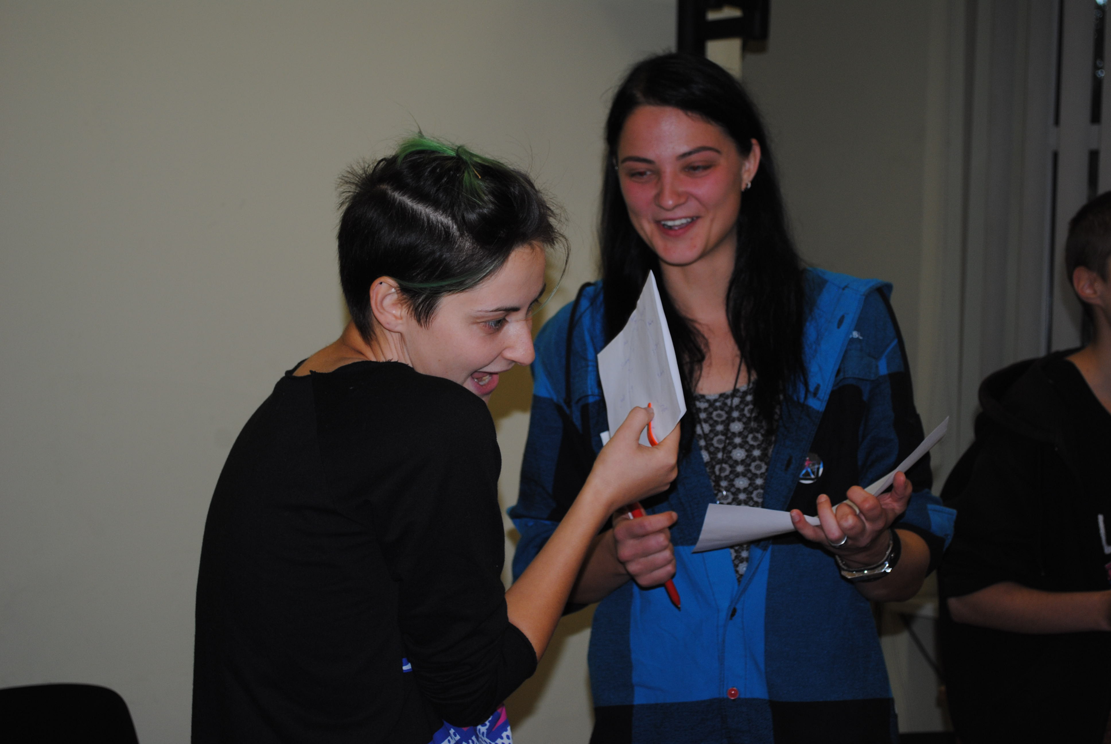 Antroji veikla – istorijų pasakojimai – taip pat buvo labai neformali ir prisidėti prie jos buvo galima bet kuriame etape. Pirmiausia visi turėjo užrašyti kokį nors norą ant lapelių, kurie vėliau buvo sumaišyti. Tada savanoris traukdavo norą iš dubens ir pasakodavo istoriją taip, lyg tas noras jau yra išsipildęs, o klausytojai turėdavo atspėti koks buvo noras. Pasakodamas istoriją dalyvis turėdavo į ją įtraukti su biseksualumu susijusį terminą, (jį vėliau bendrai aptardavome), kurį išsitraukdavo iš kito dubens, ankščiau paruošto Justės. Dėka gero užduoties parengimo, man buvo labai lengva dalintis pasakojimu, o kadangi į istorijas įtraukdavom ir terminus, tai vėliau buvo lengviau apie juos diskutuoti.