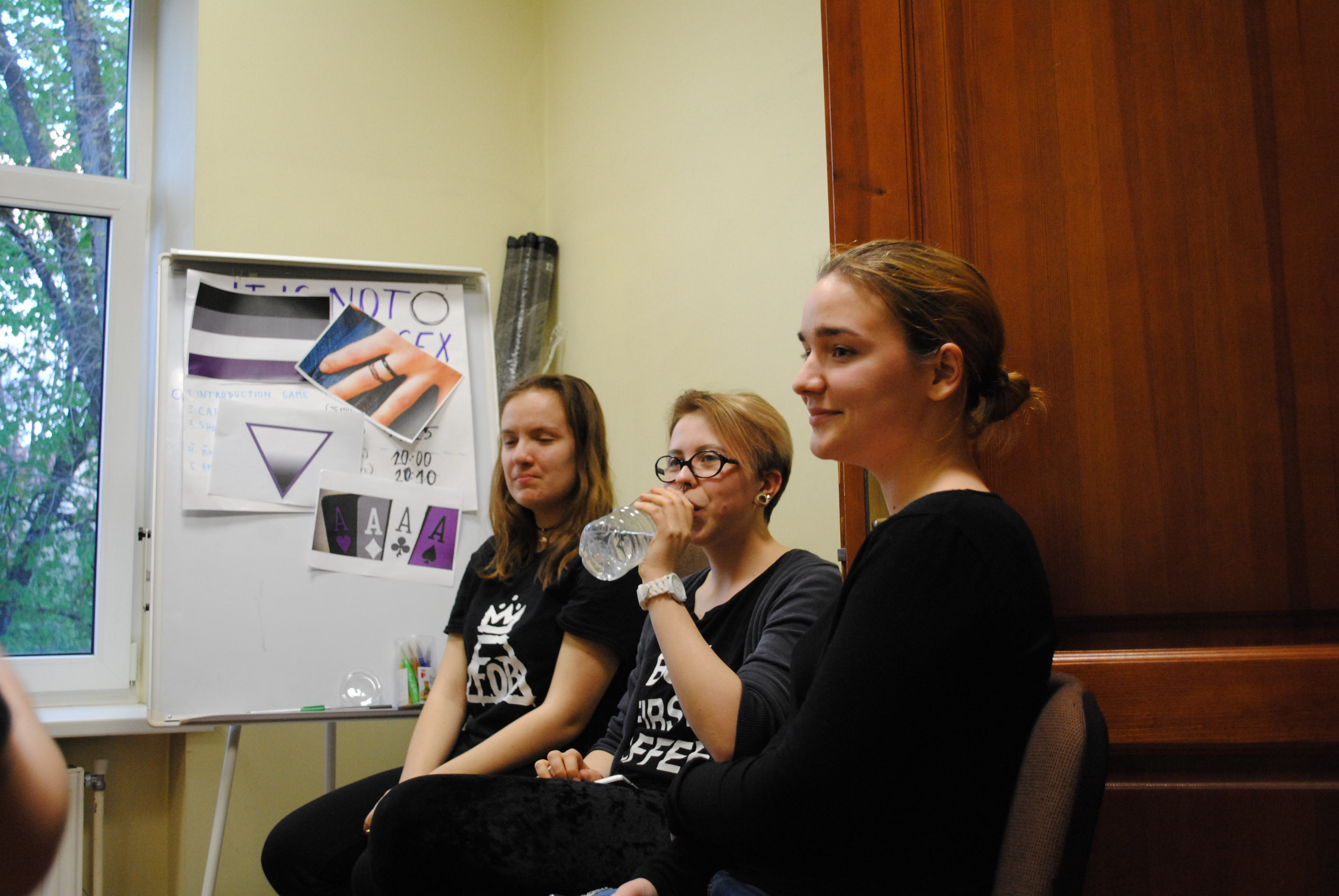 Po trumpo įvadinio žaidimo, susiskirstėme į tris grupes ir kartu atradome naujus terminus ir jų reikšmes. Pavyzdžiui, susipažinome ką reiškia būti aseksualiu, demiseksualiu, ir ,,pilkoje skalėje”. Aptarėme aseksualumo kontekste vartojamas tokias sąvokas, kaip aloseksualas, ”tūzas” ( angl. Ace), pasibjaurėjęs ir abejingas. Taip pat susipažinome su skirtumais tarp celibato ir aseksualumo. Po šių diskusijų, vėl susiskirstėme į dvi grupes argumentavimo žaidimui, kurio klausimas buvo ,,Ar aseksualumas yra priskirtinas LGBT+ bendruomenei?”. Galėjome ieškoti ir kitų žmonių argumentų šiuo klausimu bei juos apginti – kas nėra taip lengva, kaip atrodo. Susitikimo pabaigoje, daugiausia diskutavome apie įsitraukimą į LGBT+ bendruomenės veiklą ir to svarbą. Susidomėjai? Atvyk į LGL bendruomenės centrą sekantį kartą!