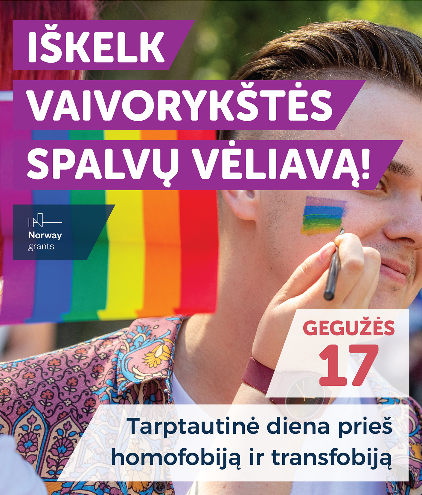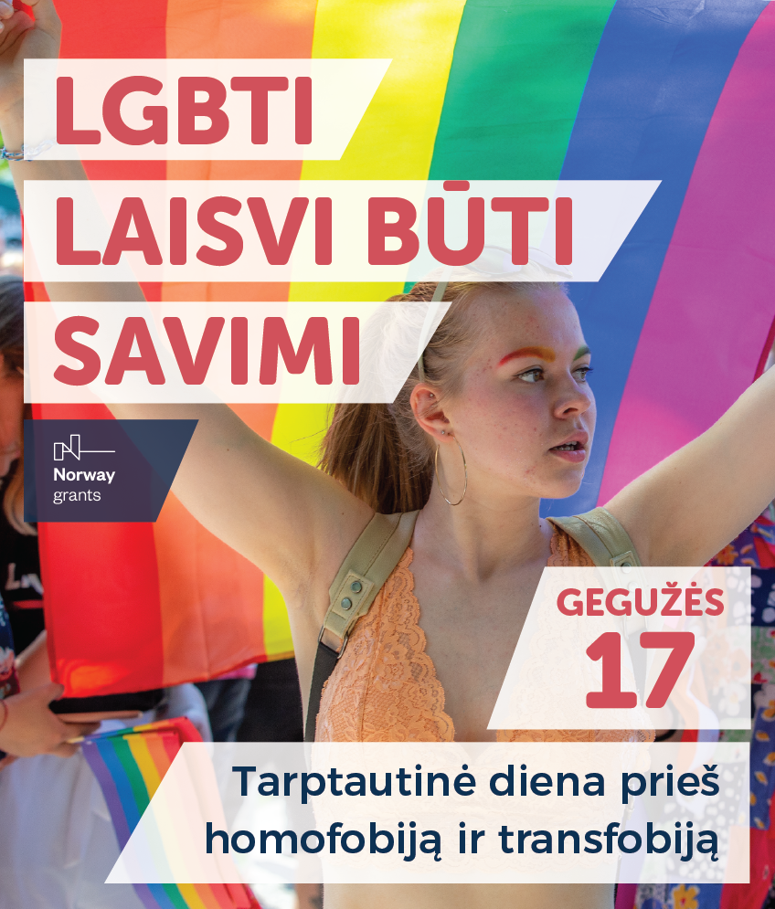 Nacionalinės LGBT teisių organizacijos LGL Tarptautinės dienos prieš homofobiją, transfobiją ir bifobiją proga vykdomą socialinę kampaniją finansuoja Norvegijos ambasada Lietuvoje.