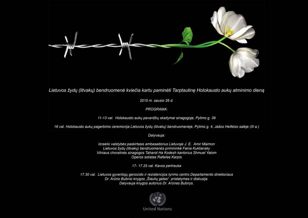 - Data: 26 Sau 2015 Pradžia: 16:00 Vieta: Lietuvos žydų (litvakų) bendruomenė Pylimo g. 4 Vilnius
